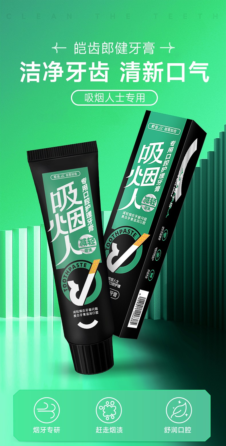 杭州皚齒郎健牙膏,吸煙人士專用!多重亮齒精華成分加持!